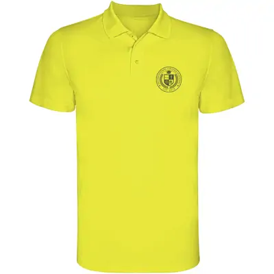 • Short-sleeve technical polo-shirt crafted from Piqué knit of 100% Polyester, 150 g/m2, ensuring lightweight comfort and durability