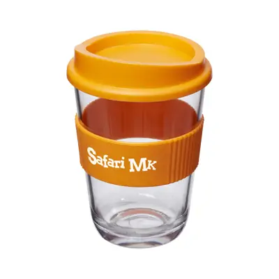 • Single-walled with a press-on spill-proof lid and silicone grip